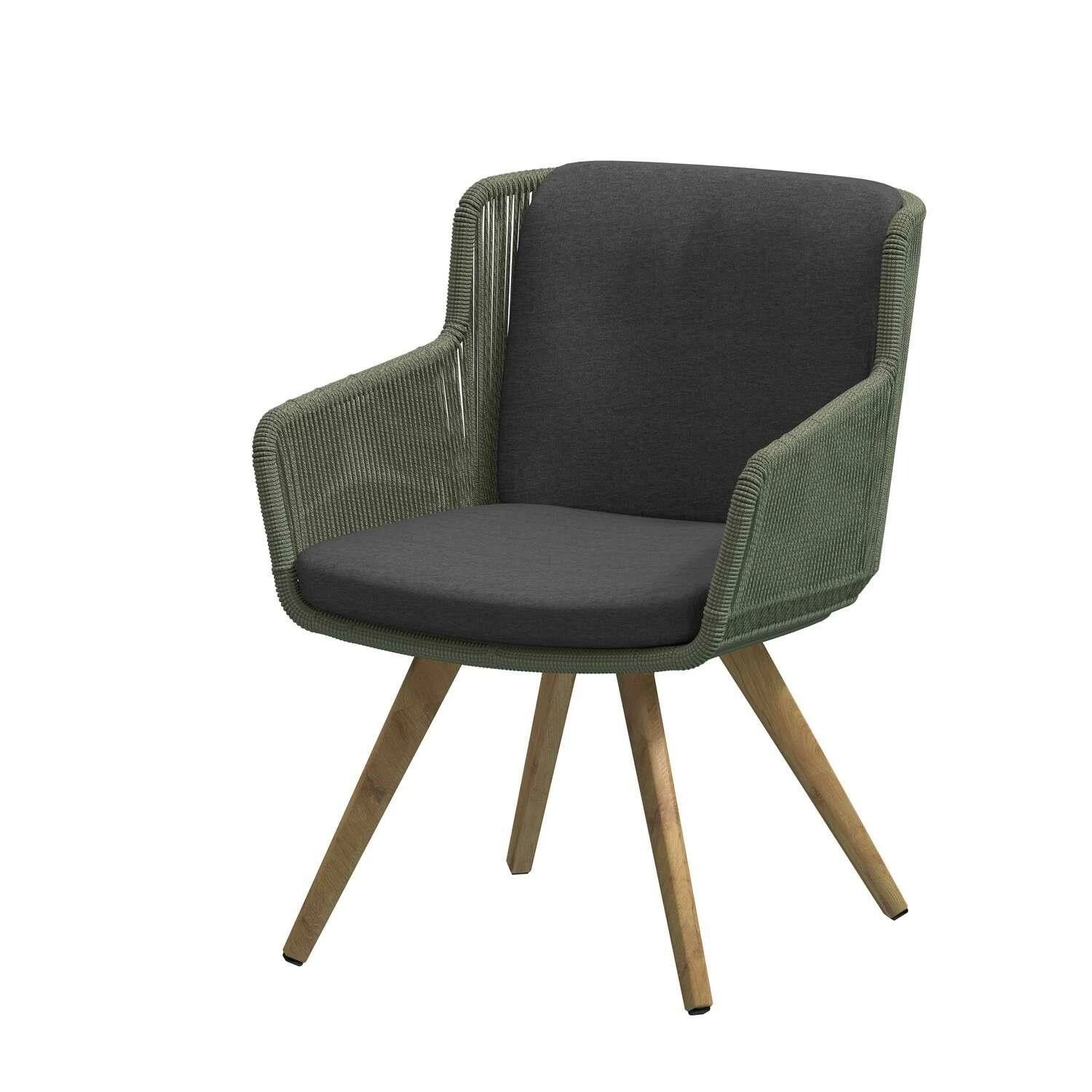 De 4 Seasons Outdoor Flores dining tuinstoel is een zeer moderne stoel voor in uw tuin. De strakke afwerking en materialen zorgen ervoor dat deze tuinstoel makkelijk te matchen is met een tuintafel. De stoel wordt geleverd inclusief weerbestendige kussens. De poten zijn gemaakt van teakhout, een stevig houtsoort met een hoge vezeldichtheid. Het aluminium frame is afgewerkt met touw voor een stijlvolle uitstraling.