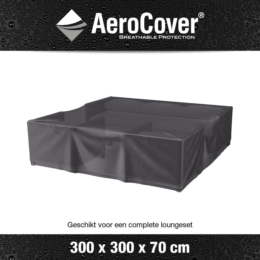 De AeroCover Loungesethoes 300 x 300 x 70 antraciet is speciaal ontwikkeld om een complete loungeset te beschermen. Bijvoorbeeld loungesets die bestaan uit meerdere elementen, lounge-diningsets met hoge tafel of L-vormige loungebanken die tegen elkaar worden geschoven.