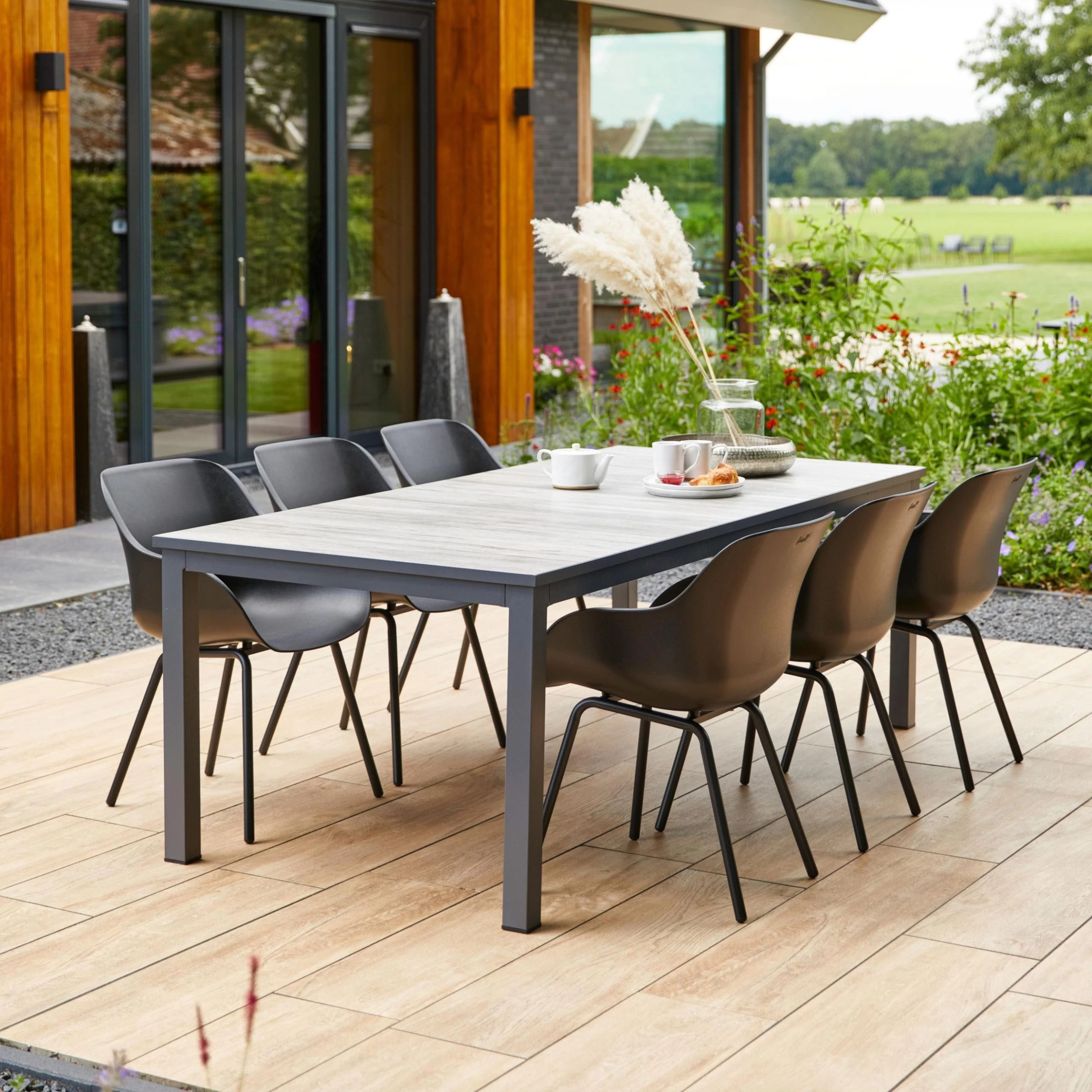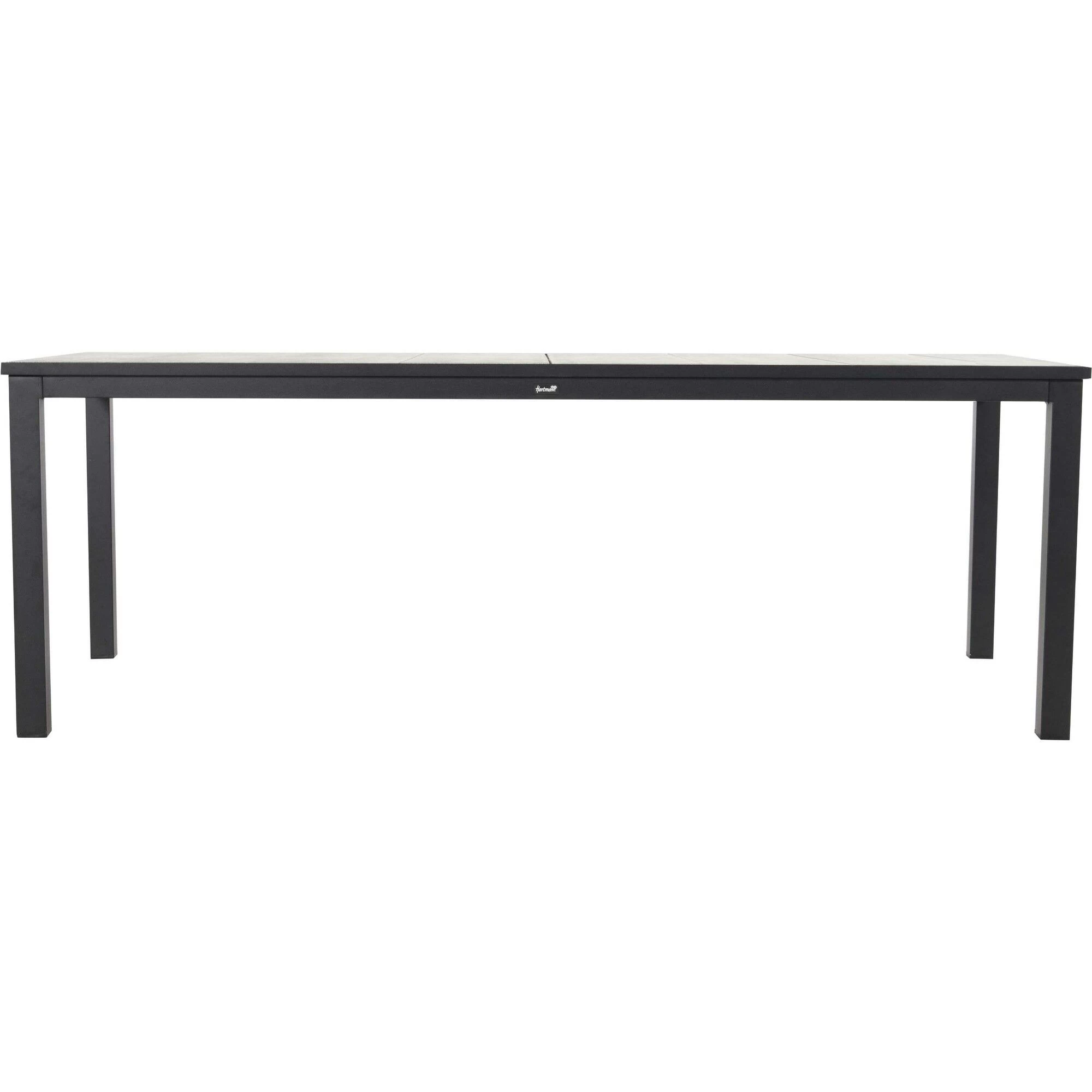 De Hartman Comino tuintafel in de kleur black is geschikt voor het gehele seizoen. Deze Hartman tuintafel is namelijk gemaakt van weerbestendige materialen. Hierdoor kunt u de tafel gerust buiten laten staan. Het tafelonderstel is gemaakt van aluminium. Dit materiaal is zeer sterk, duurzaam en licht. Het lichtgrijze tafelblad is van keramiek.