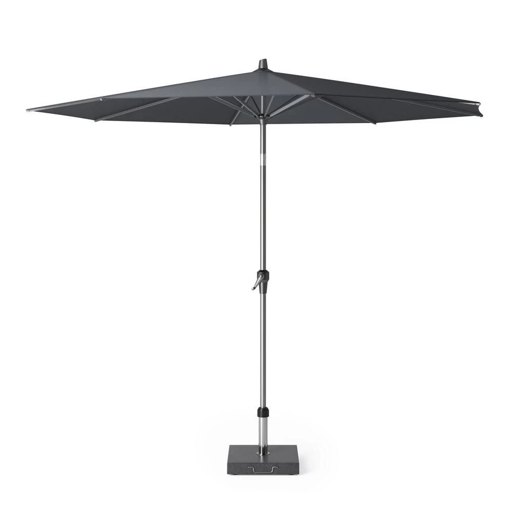 De Platinum Riva parasol 300 antraciet heeft een moderne, strakke uitstraling. Deze ronde Platinum parasol heeft een diameter van 3 meter en is uitgerust met een stevige deelbare mast, easy-up opdraaimechanisme en doekspanners voor een extra strakke uitstraling. Met het kantelsysteem creëert u altijd schaduw in uw tuin of op het balkon. Deze Riva parasol wordt geleverd exclusief parasolvoet, deze is optioneel verkrijgbaar. Een Platinum parasolvoet van ten minste 60 kilogram is een goede combinatie met deze parasol.