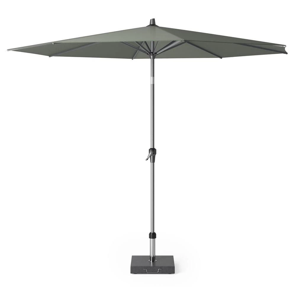 De Platinum Riva parasol heeft een moderne, strakke uitstraling. Deze ronde Platinum parasol heeft een olijfkleurig polyester doek met een diameter van 3 meter. Verder is de Riva parasol voorzien van een stevige deelbare mast, easy-up opdraaimechanisme en doekspanners voor een extra strakke uitstraling. Met het kantelsysteem creëert u altijd schaduw in uw tuin of op het balkon. Deze Riva parasol wordt geleverd exclusief parasolvoet, deze is optioneel verkrijgbaar. Een Platinum parasolvoet van ten minste 60 kilogram is een goede combinatie met deze parasol.