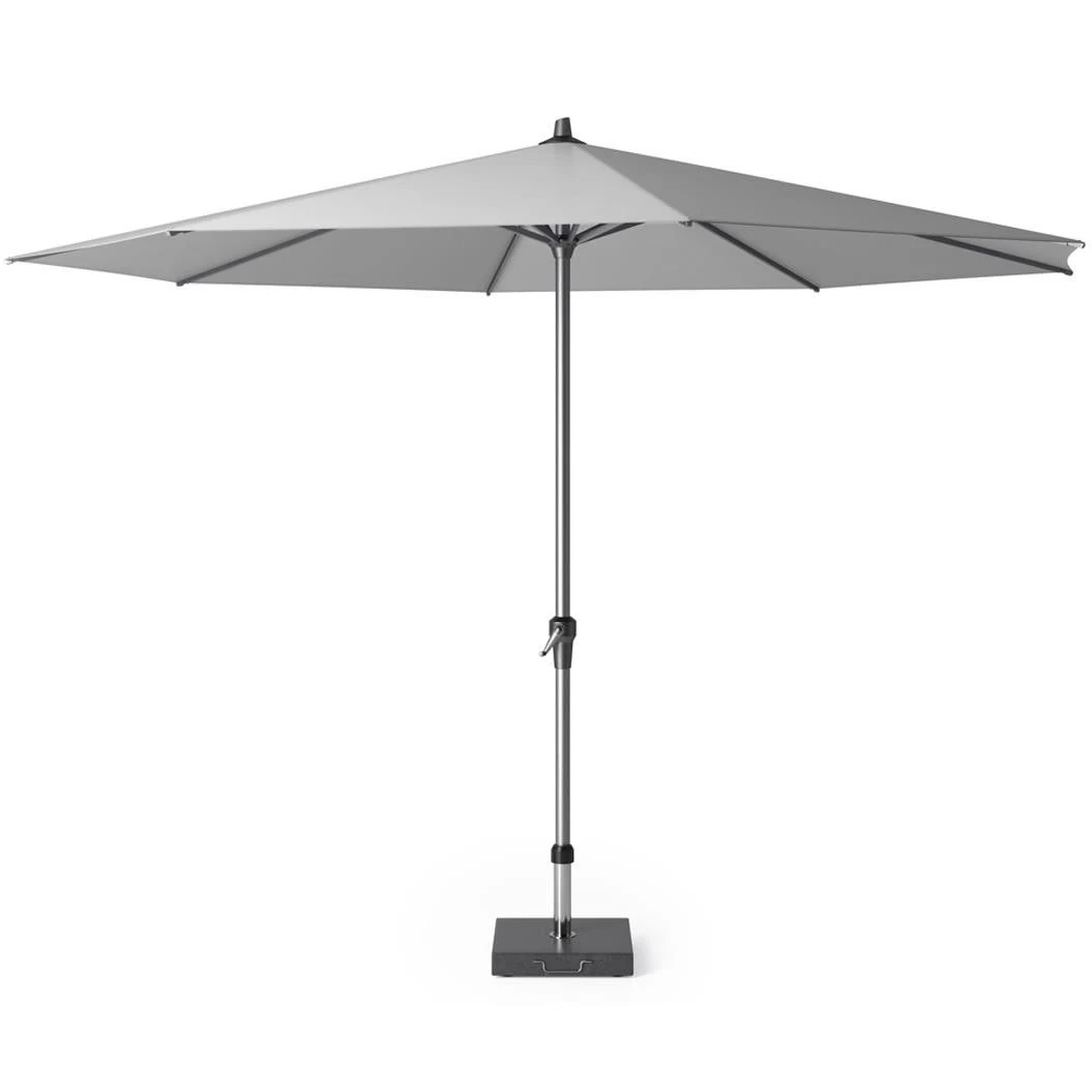 De Riva parasol van het merk Platinum is een grote, klassieke, ronde parasol met een diameter van 3,5 meter. De parasol is duurzaam, zeer gebruiksvriendelijk en makkelijk verplaatsbaar door het lichtgewicht aluminium frame. De parasol heeft een deelbare mast, een easy-up opdraaisysteem en kan geplaatst worden op een kruisvoet of een granieten voet van tenminste 60 kg.