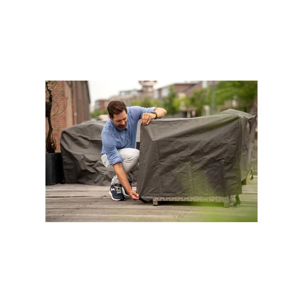 De Premium loungeset hoes van Winza Outdoor Covers biedt optimale bescherming aan uw loungeset. Deze Winza Outdoor Covers hoes is door het gebruik van een sterk en slijtvast gecoat PP materiaal waterdicht. Bovendien blijft hij lang mooi doordat hij kleurvast en uv-bestendig is. Met behulp van klittenband kan deze hoes aan het meubel vastgemaakt worden. Belangrijk is dat u alleen een droge loungeset afdekt, dit in verband met mogelijk vochtschade. Verwijder vooraf ook altijd de kussens en berg deze in huis op.